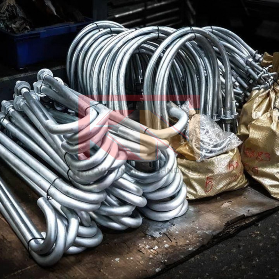 Bu lông neo chữ U thường được dùng để cố định đường ống, hệ thống cơ điện hoặc các thiết bị cần giữ chặt vào bệ móng.