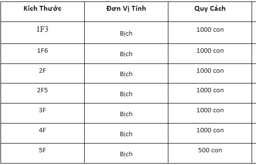 Kích thước vít sắt đầu dù